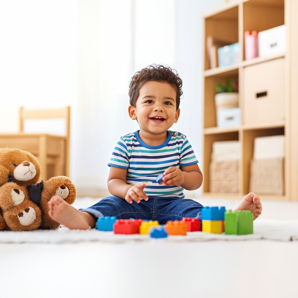 يمكنكِ إضافة لمسة حركية بجعل المسار يتضمن الزحف تحت الطاولة أو القفز فوق السجادة، مما يقوي مهارات التخطيط الحركي لديه ويجعل عملية التنظيف تبدو كجزء من قصة خيالية مشوقة.