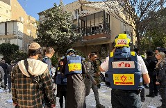 طواقم الانقاذ في موقع سقوط شظايا وحطام صاروخي - تصوير: نجمة داود الحمراء