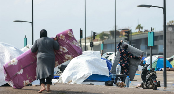 واضطر محمد مرعي، الذي فر من مدينة النبطية بجنوب لبنان، للاحتماء تحت شجرة على كورنيش بيروت، مستعينا بغطاء بلاستيكي قبل أن تقتلعه الرياح.