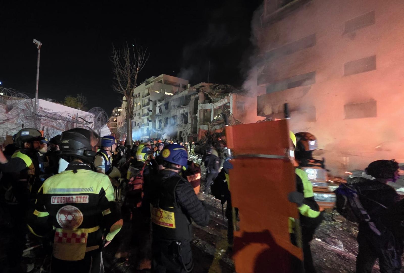 إصابة 21 شخصا بينهم مصابان بحالة حرجة وخطيرة إثر سقوط صاروخ في تل أبيب - تصوير نجمة داوود الحمراء