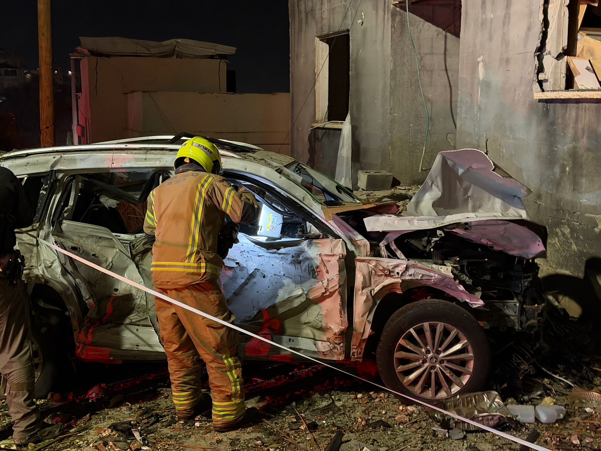 وقال المسعف في نجمة داوود الحمراء عيران عبو: "عندما وصلنا إلى المكان رأينا دمارا هائلا في عدة منازل وشظايا زجاج. في الموقع شاهدنا امرأة تبلغ من العمر 34 عامًا تعاني من إصابة في الظهر نتيجة شظايا وحالتها متوسطة، وفتاة تبلغ من العمر 17 عامًا أصيبت بجروح طفيفة بسبب شظايا الزجاج. قدمنا لهما علاجا طبيا متقدما ونقلناهما إلى المستشفى. كما أن طواقم إضافية من نجمة داوود الحمراء موجودة الآن في الموقع وتعالج عددًا من المصابين بحالات هلع."