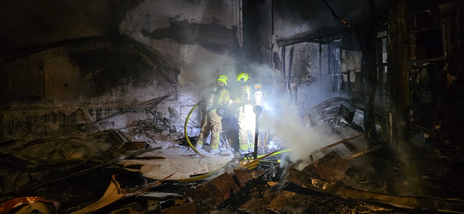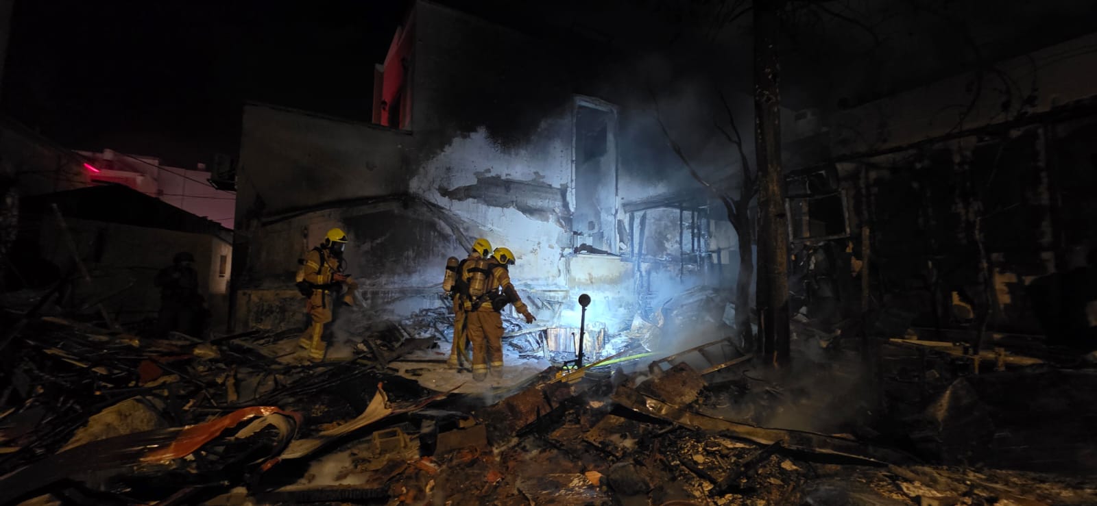 حريق ودمار هائل في موقع سقوط صاروخ بنهاريا.. تخليص امرأة وفتاتين من المبنى