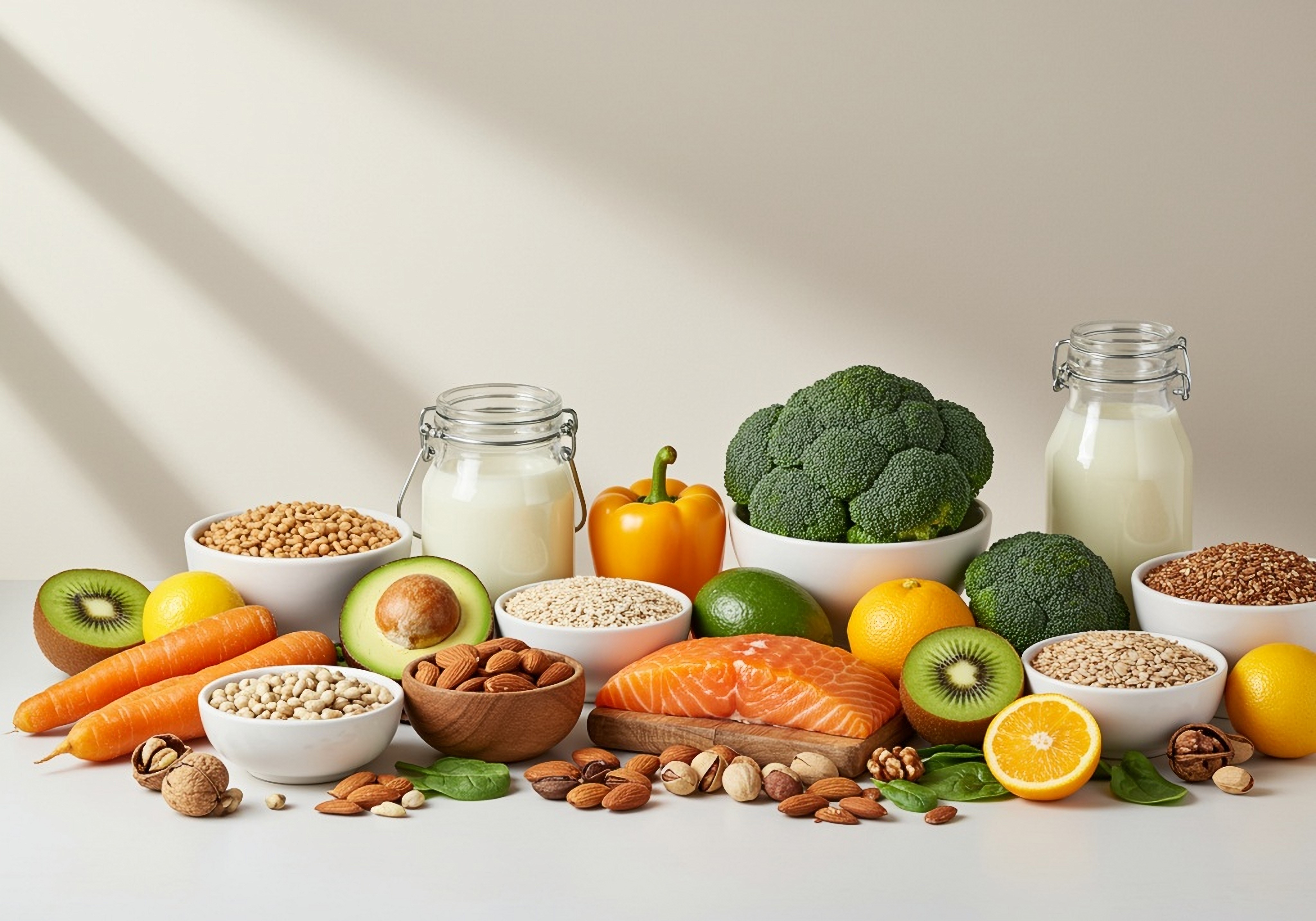 الألياف : تحسّن الهضم، تقلّل الانتفاخ، وتدعم الميكروبيوم المعوي. مصادر: الخضروات، الفواكه، الحبوب الكاملة، البقوليات.